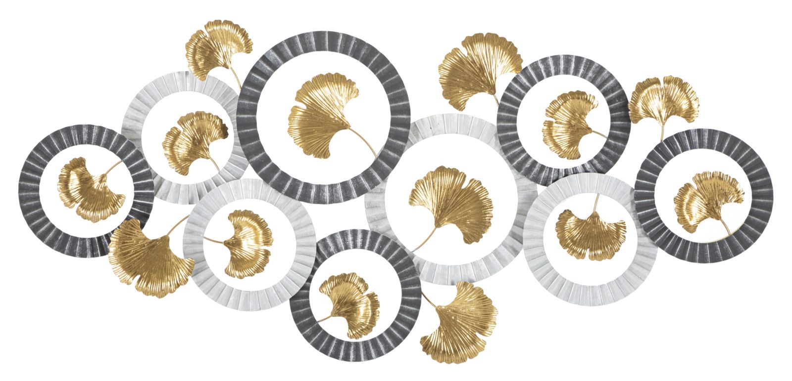 Decoración de Pared Flores Pequeñas Doradas en Marco Redondo Plateado