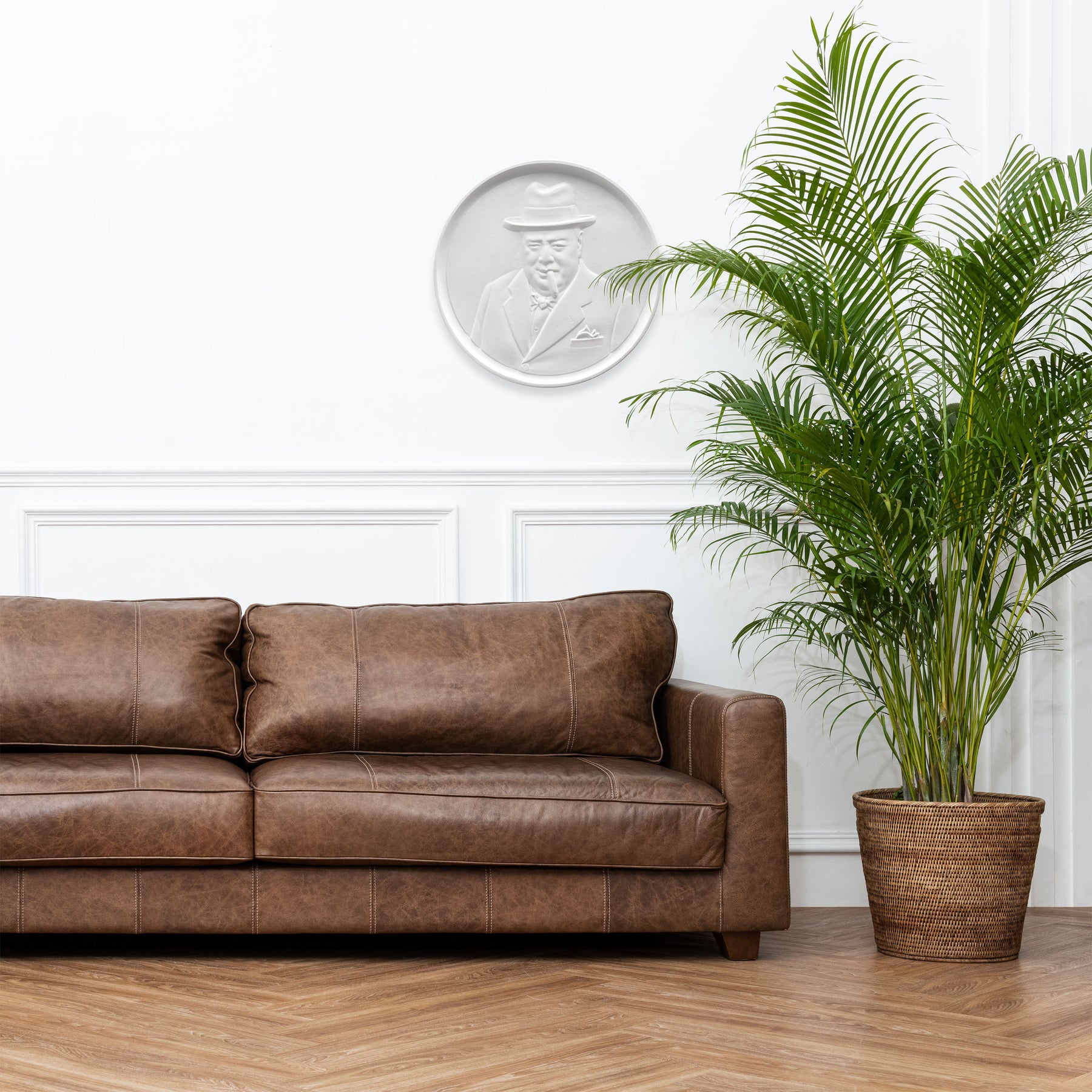 • Este llamativo bajorrelieve rinde homenaje a Sir Winston Churchill, el líder indomable cuya determinación y espíritu desafiante guiaron a Gran Bretaña en sus horas más oscuras durante la Segunda Guerra Mundial. Representado con su icónico cigarro y una mirada inquebrantable, la escultura capta la esencia del hombre apodado «el Bulldog Británico», símbolo de tenacidad, resistencia y una férrea voluntad frente a la tiranía.