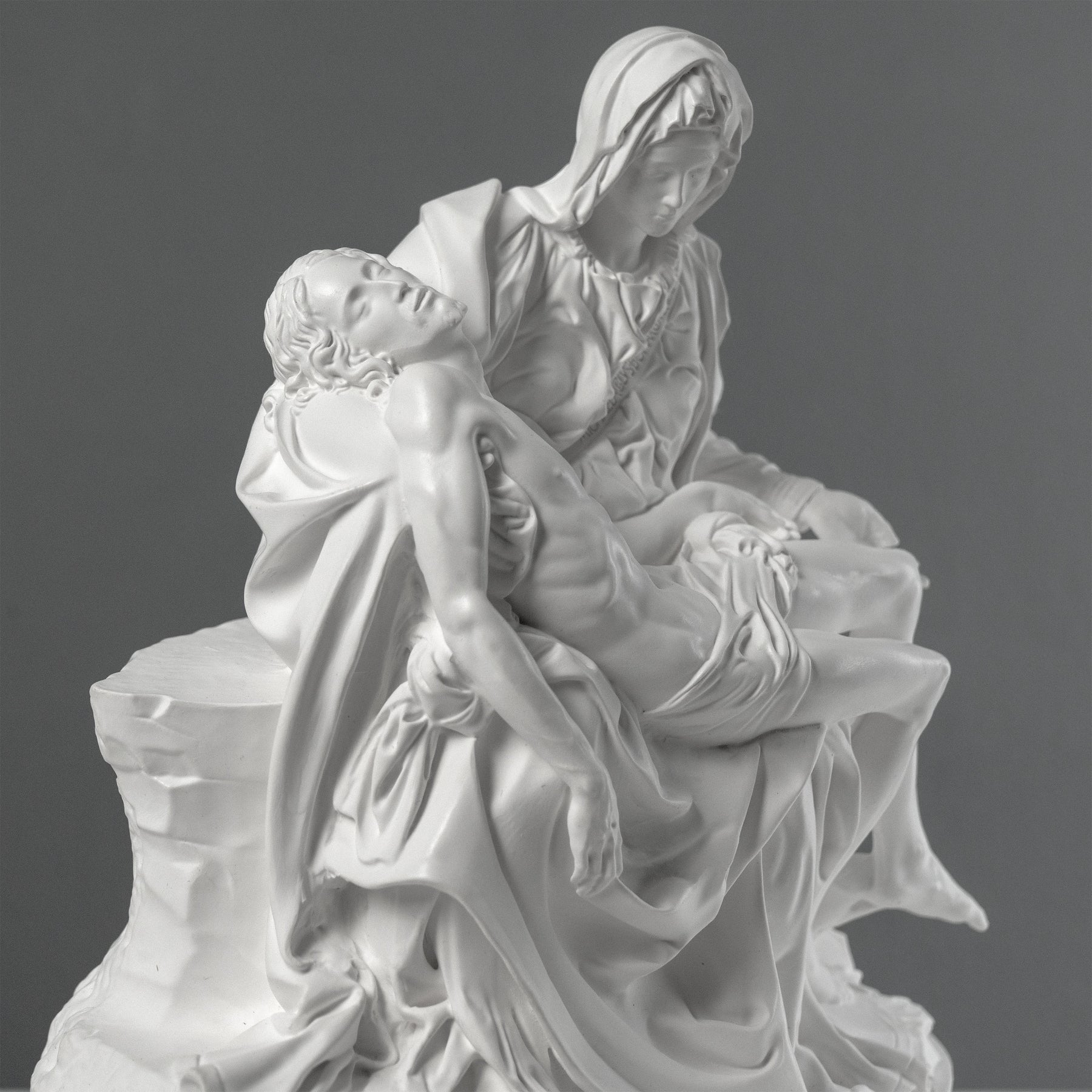 Descubre la profundidad emocional del arte renacentista con esta refinada réplica de la Piedad de Miguel Ángel. Elaborada en resina de alta calidad, refleja fielmente las formas delicadas y la expresión serena de la original. Una pieza atemporal que aporta elegancia espiritual y artística a cualquier espacio.