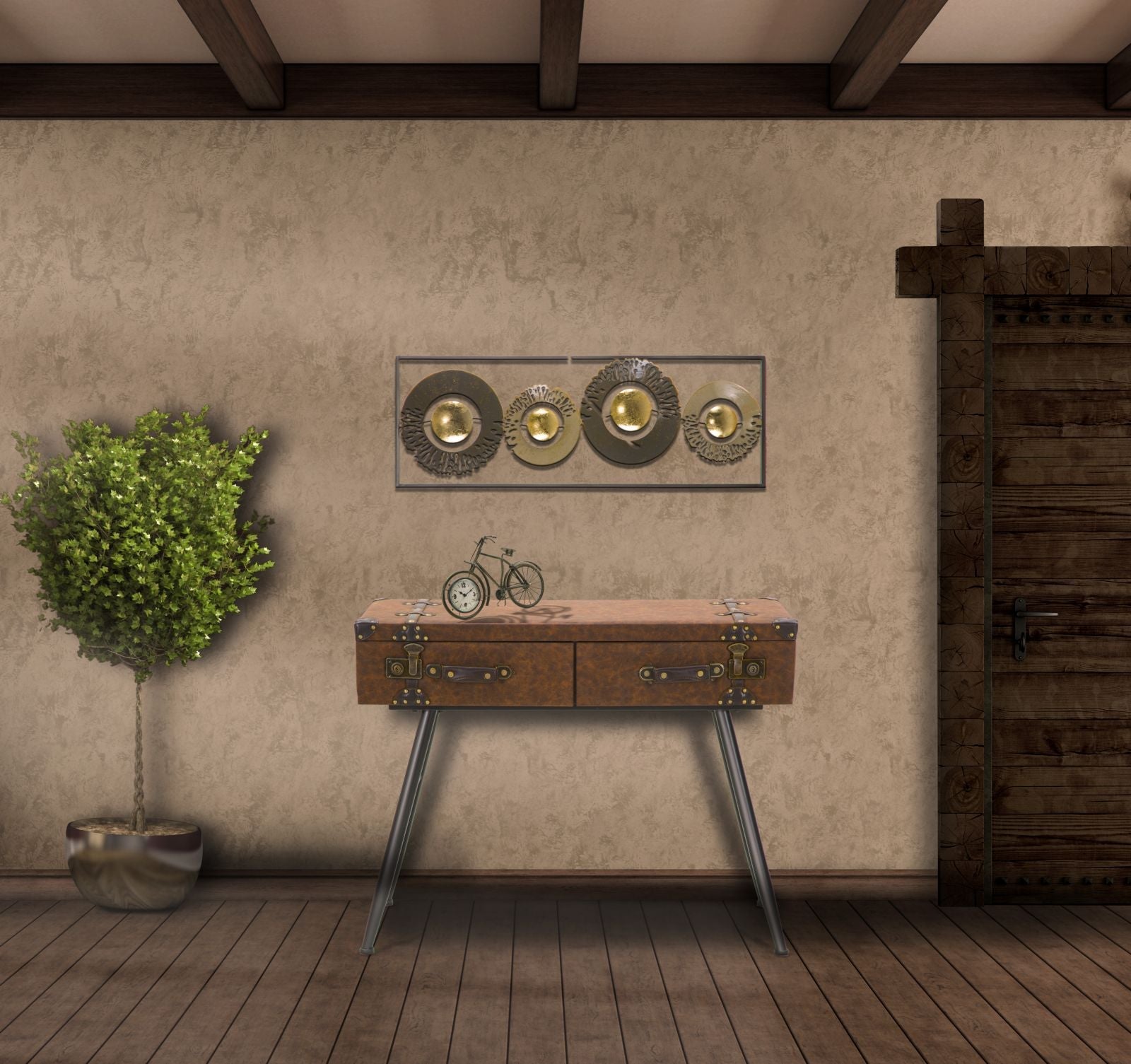 Decoración Geométrica Redonda De Metal En La Pared En Marco