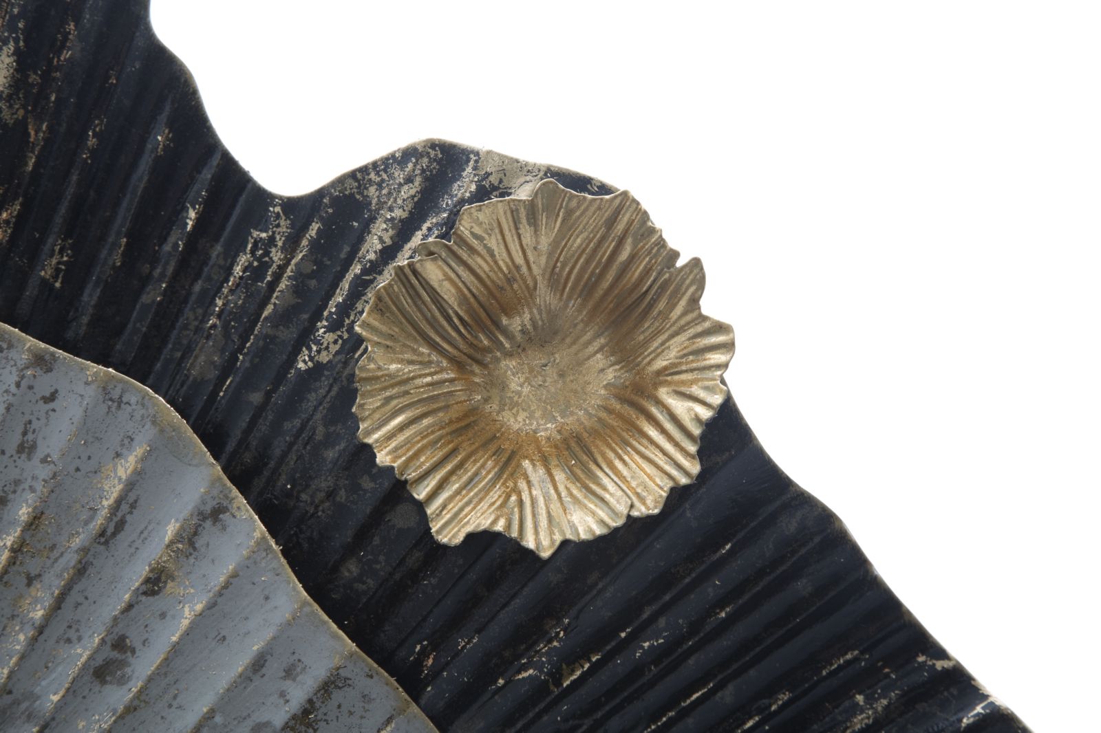 Decoración de pared con flores doradas, negras y grises