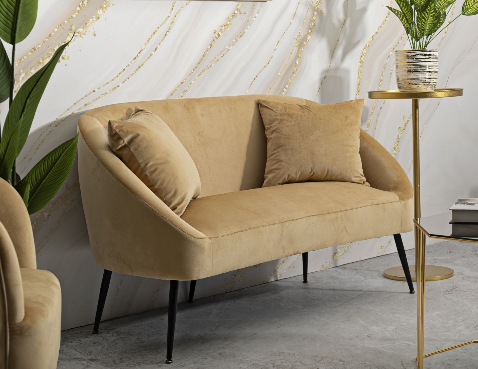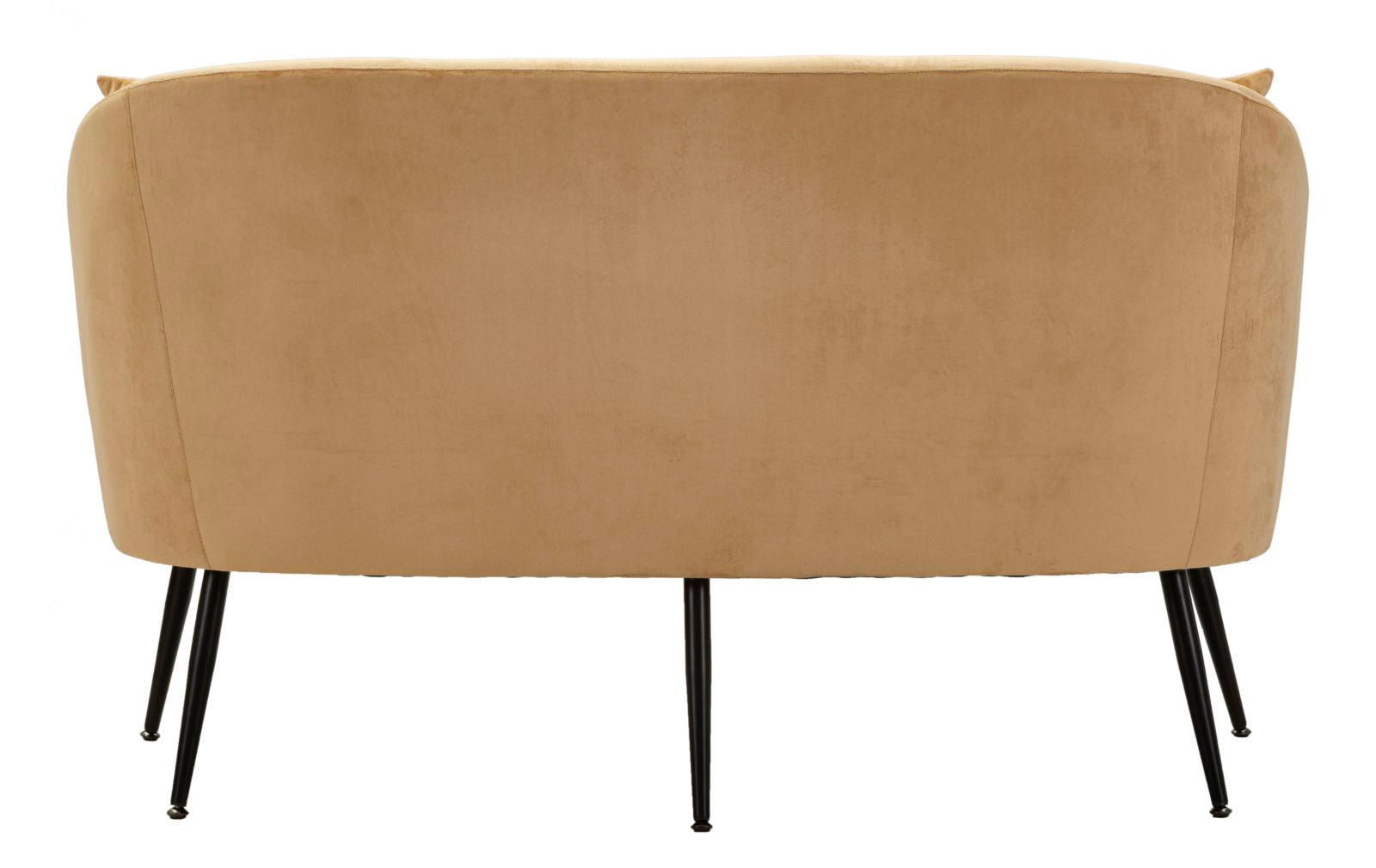 Sofá marrón de dos plazas con patas negras para montar, tapizado en suave piel sintética. Ideal para ambientes modernos y refinados, aporta un toque de lujo y comodidad.