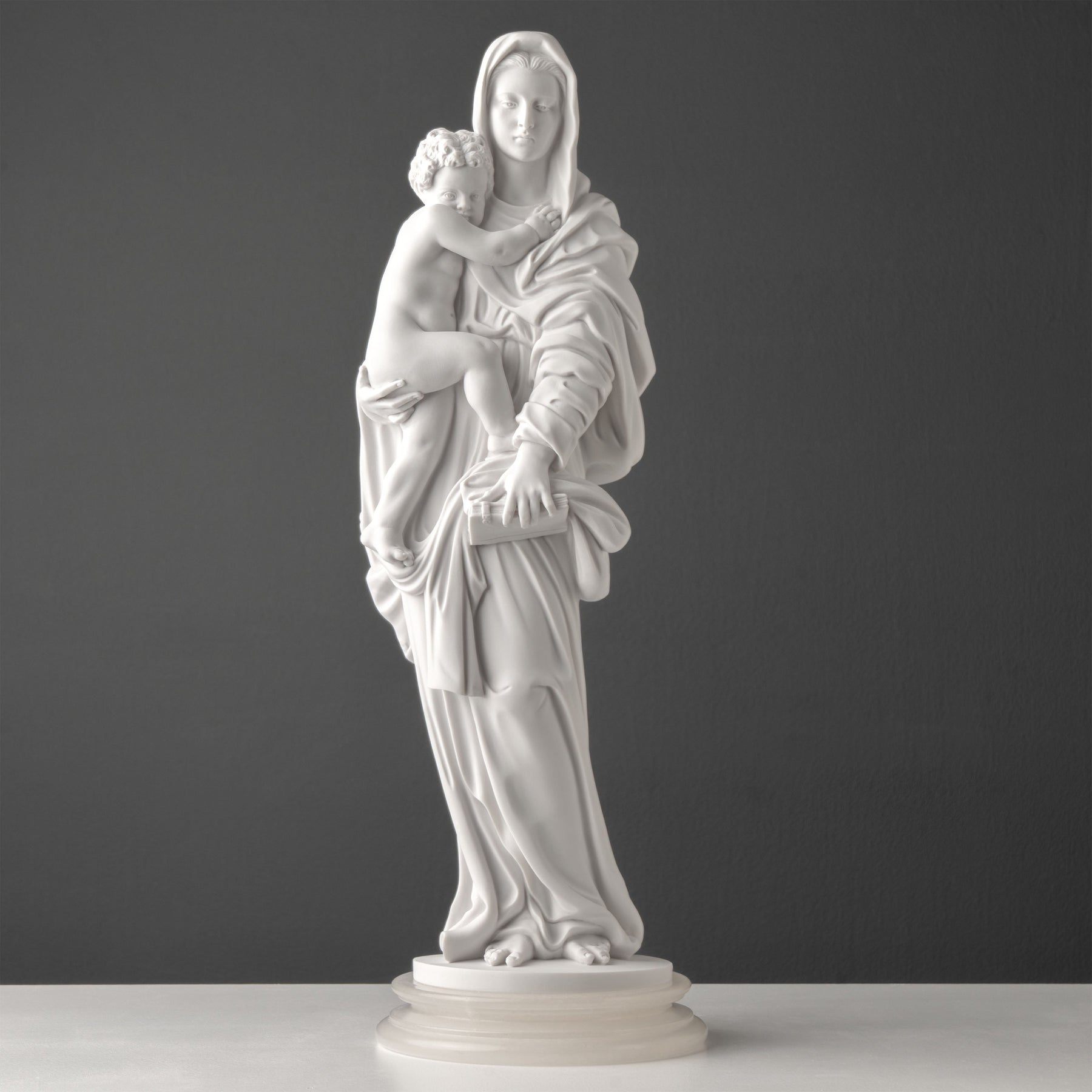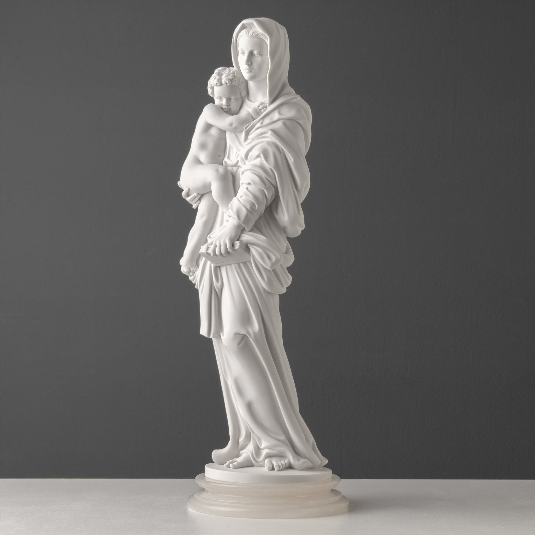 Intemporal y devocional, la estatua aporta un sentimiento de reverencia y dignidad silenciosa a cualquier interior. Funciona tanto como obra de arte como presencia contemplativa, honrando una obra maestra del Renacimiento y ofreciendo una expresión refinada de fe, ternura y belleza perdurable.