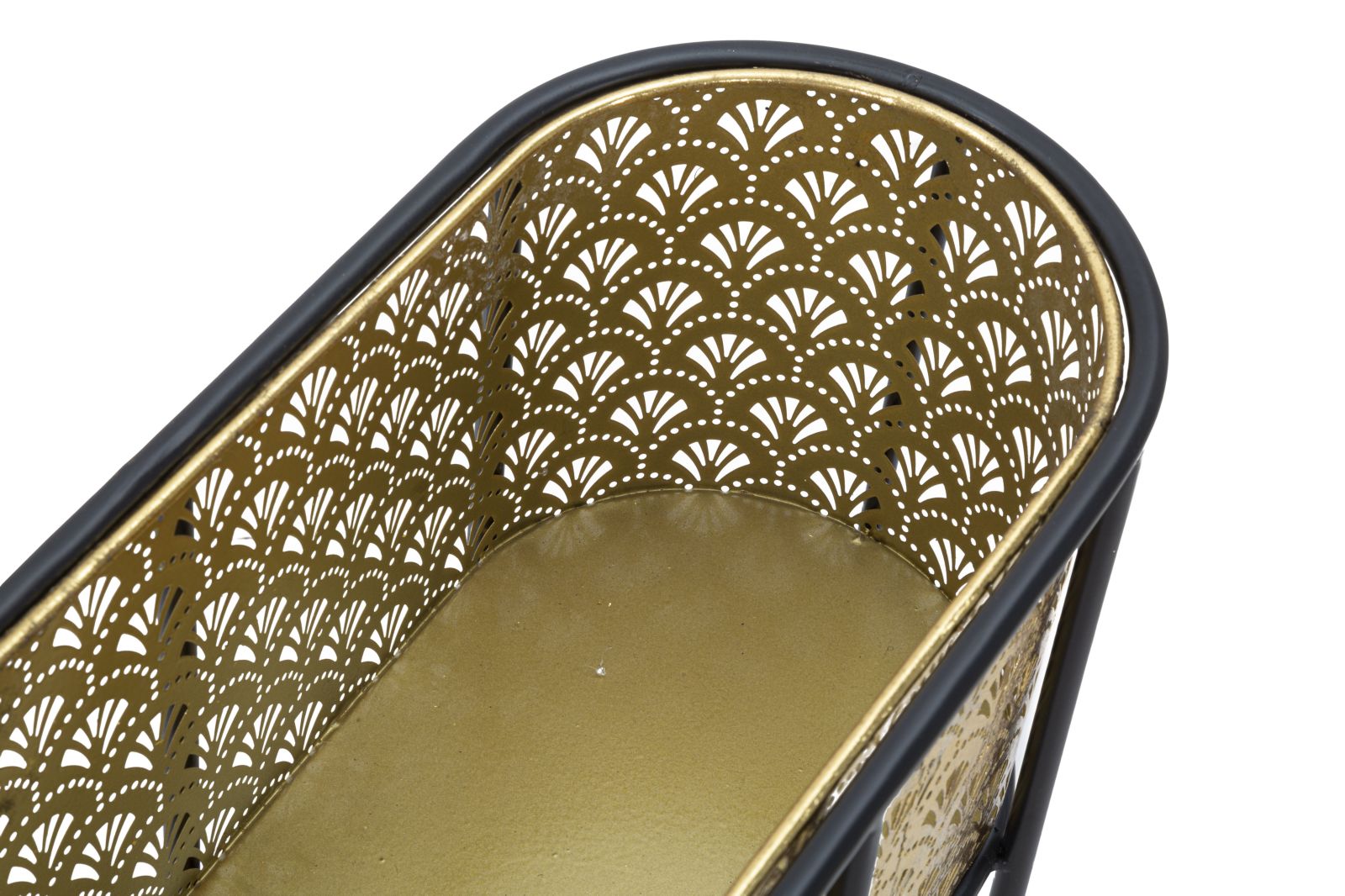 Jardinera Ovalada de Metal Dorado con Patas de Azulejo Negro