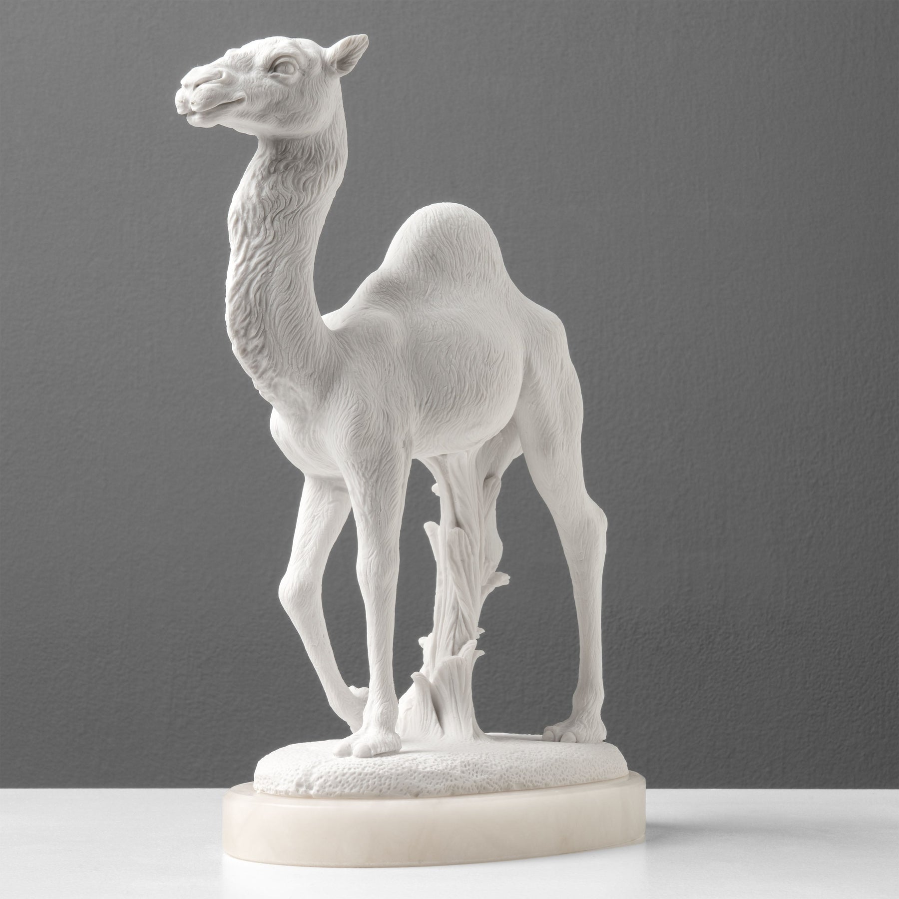 Una pieza que aporta calidez y espíritu viajero a cualquier interior, invitando a la imaginación a explorar más allá de lo familiar, donde la supervivencia es un arte y la perseverancia una virtud noble.Esculturas de mármol aglomerado