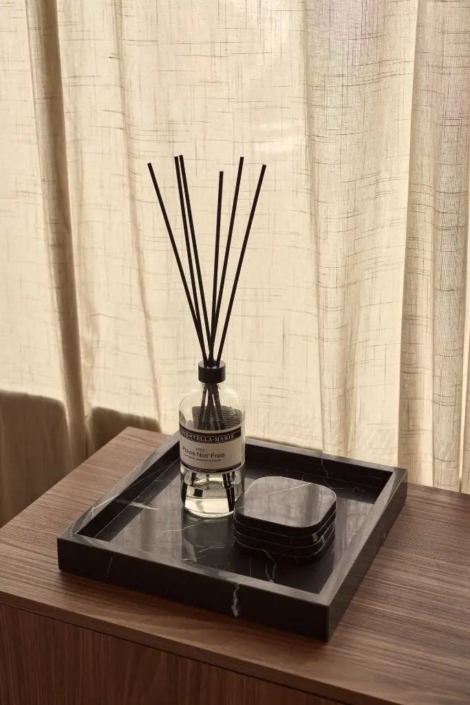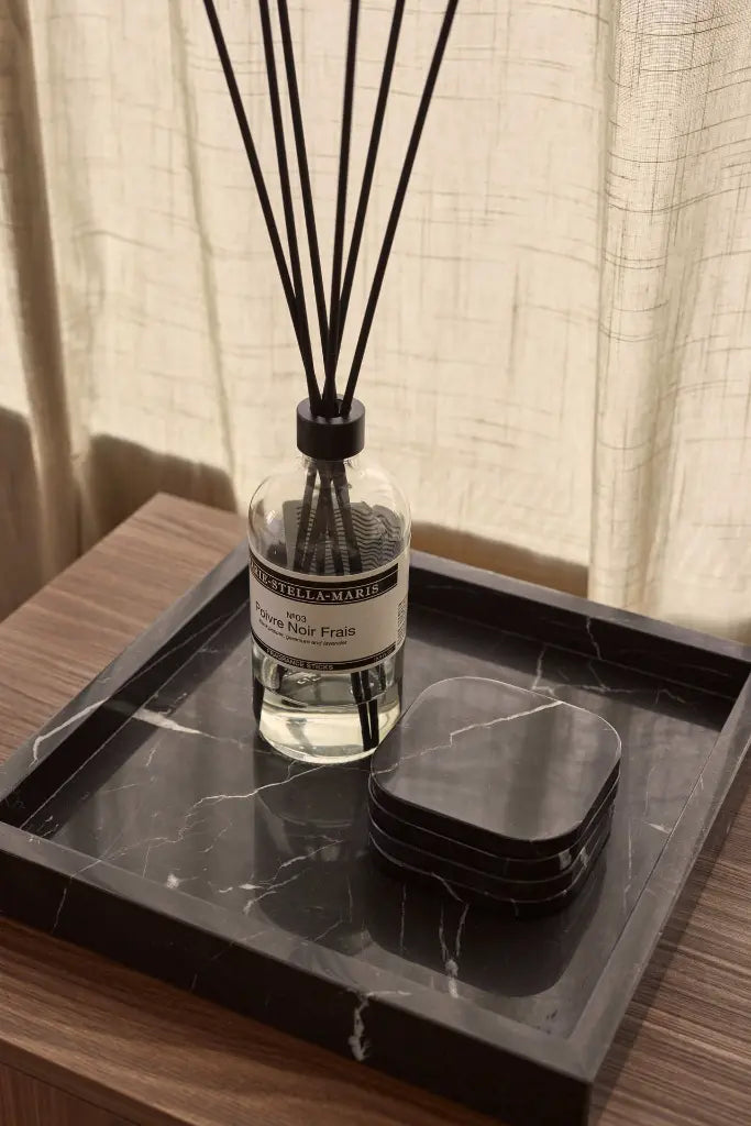 • Esta lujosa pieza de menaje no solo luce hermosa, sino que también añade un toque organizado y sofisticado a su espacio vital. Elaborada con mármol negro de calidad premium, complementa sin esfuerzo cualquier interior, añadiendo una elegancia atemporal que nunca pasa de moda.