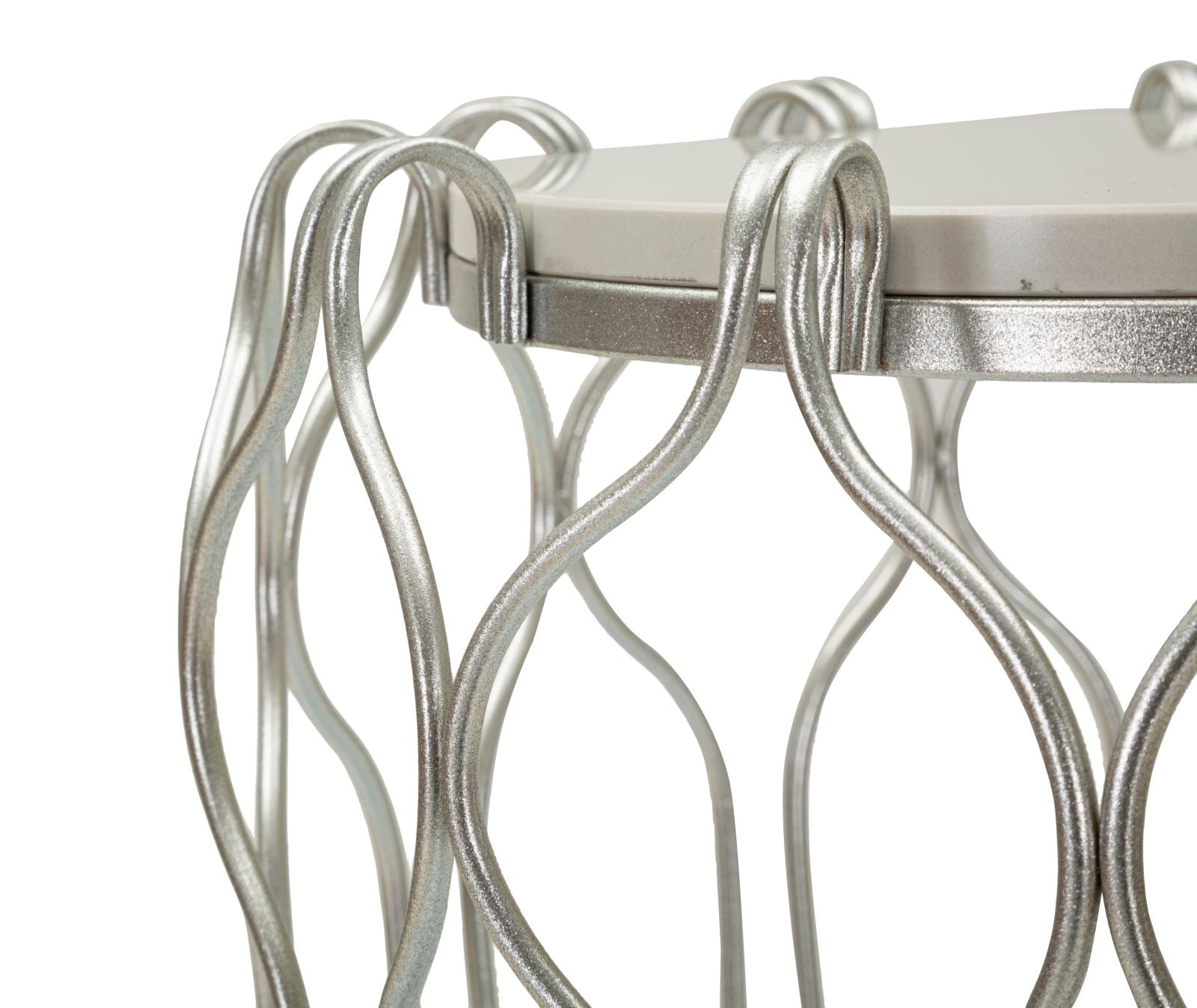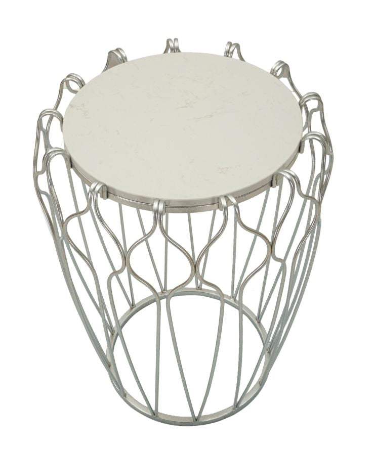 Mesa auxiliar redonda de mármol artificial con estructura metálica tejida – Hook diseño de acento