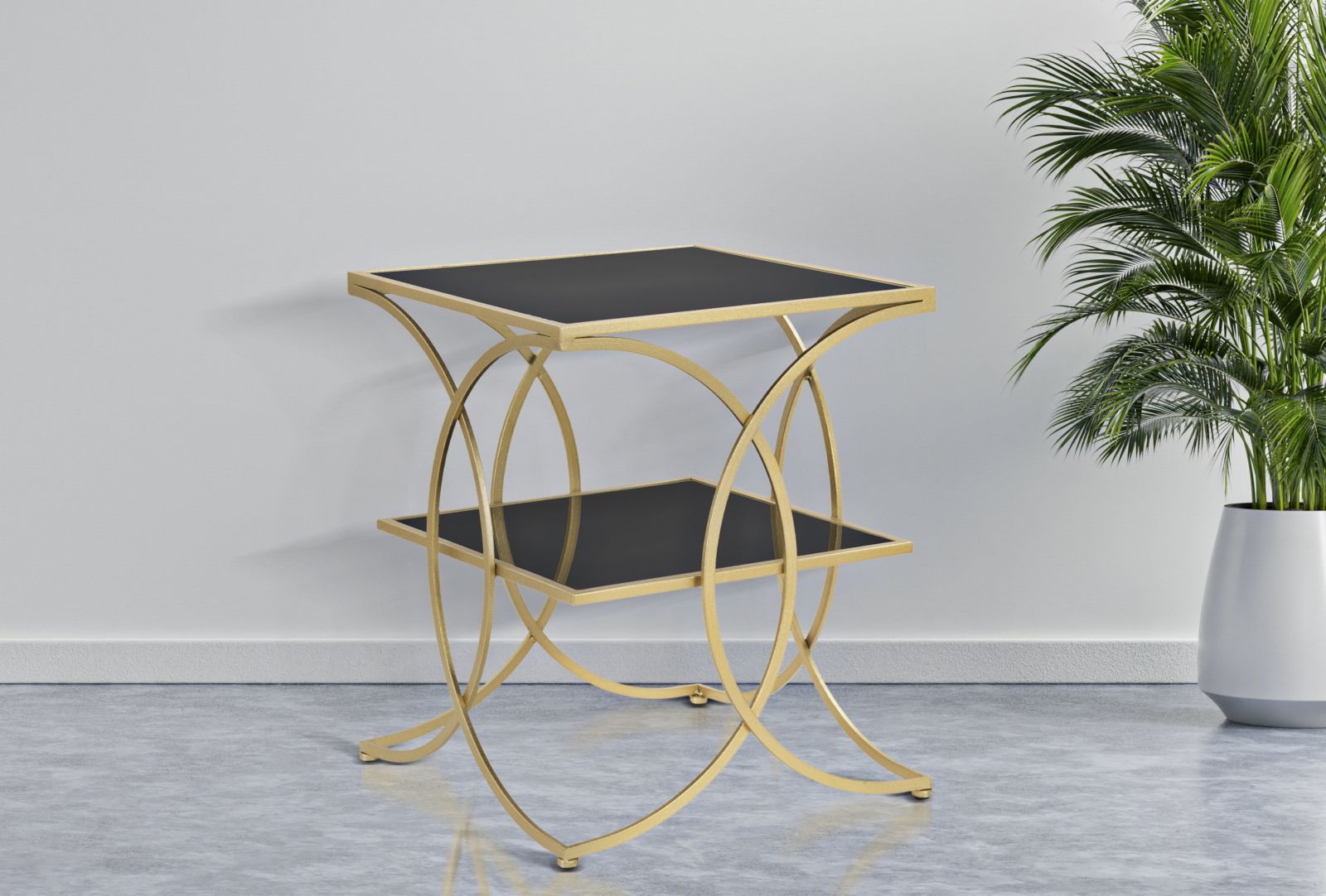 Mesa Cuadrada de Metal y Cristal Dorada y Negra