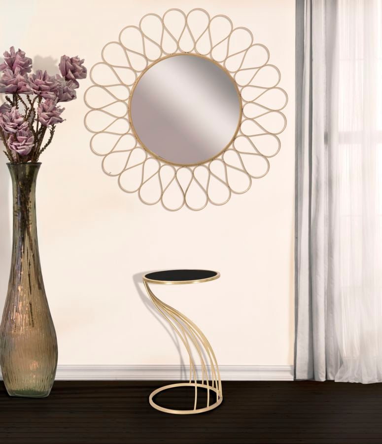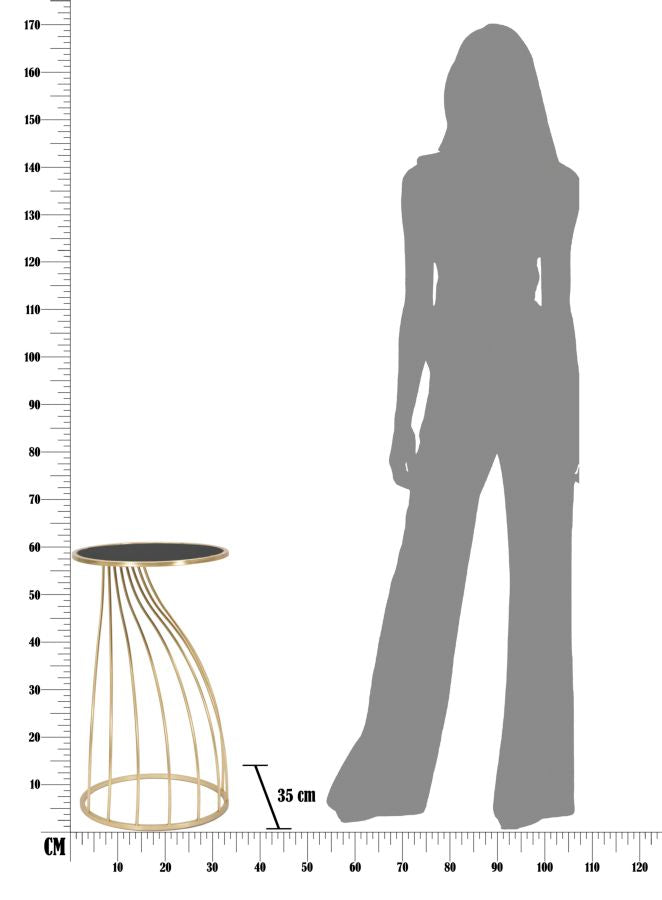 Mesita Geométrica de Metal y Vidrio Dorado y Negro