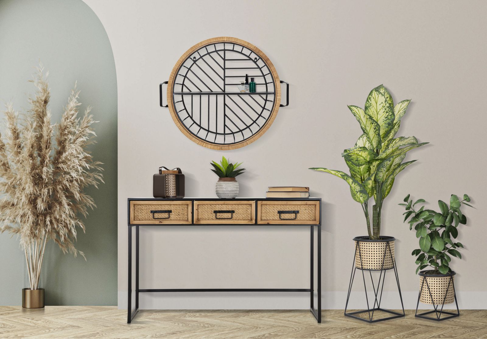 Estante de pared redondo con marco de ratán – Cebu almacenaje decorativo