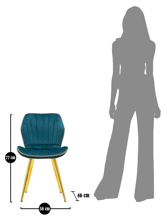 Juego de 2 sillas de comedor de terciopelo turquesa con patas doradas – Paris Space