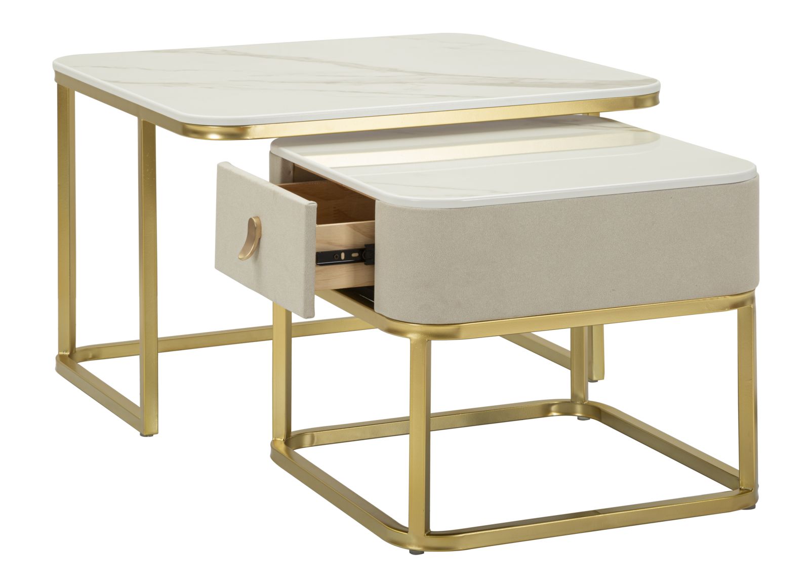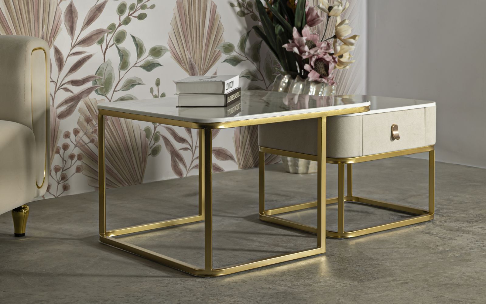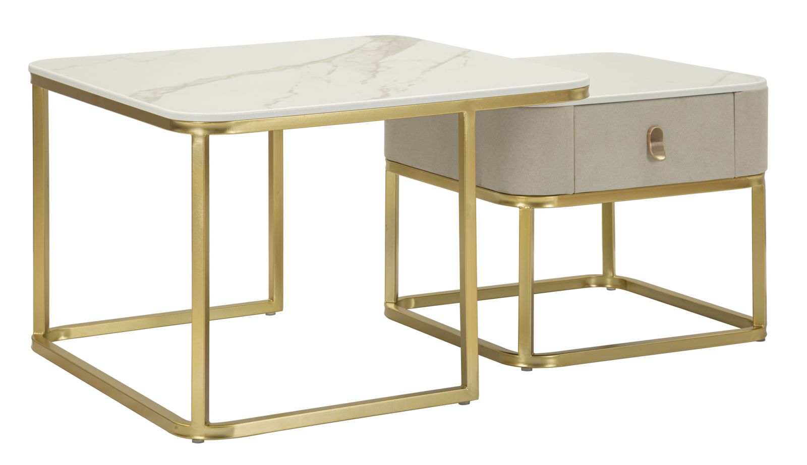 Juego de 2 mesas de centro de mármol artificial con base dorada – Beauty Collection