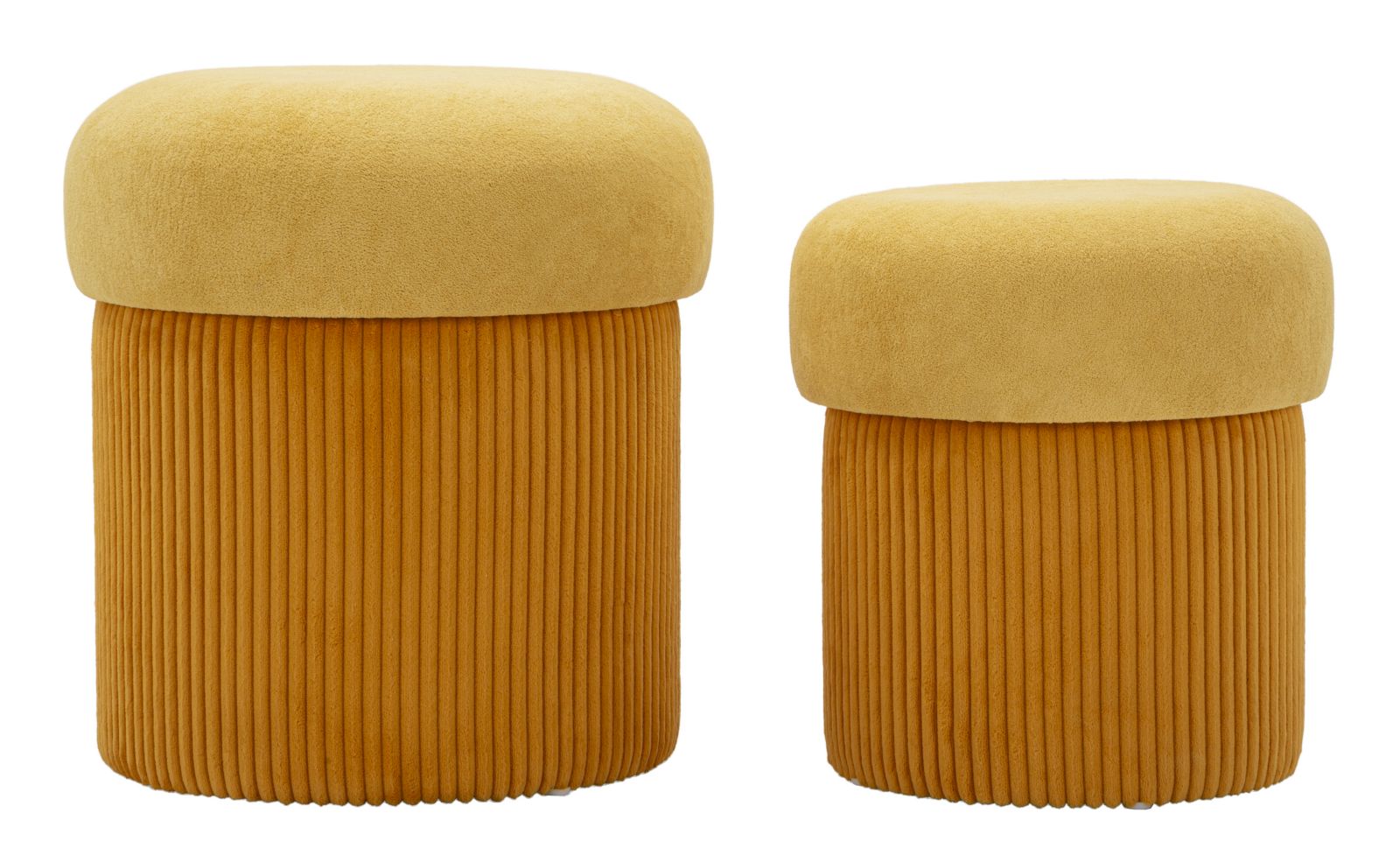 Juego de 2 pufs de terciopelo mostaza con almacenaje – Aspen diseño contemporáneo