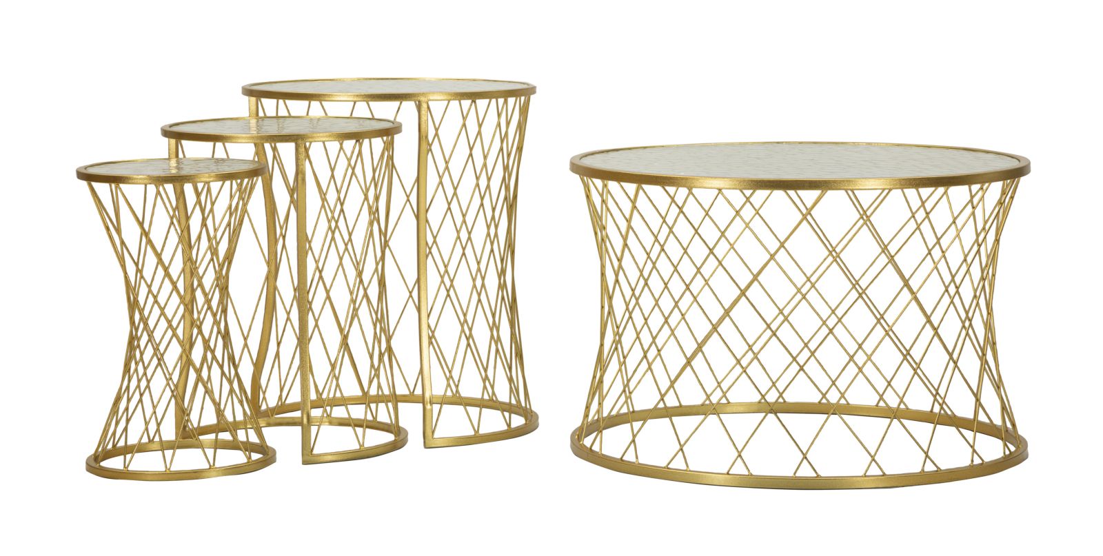 Juego de 4 mesas auxiliares de metal dorado – Noah colección moderna