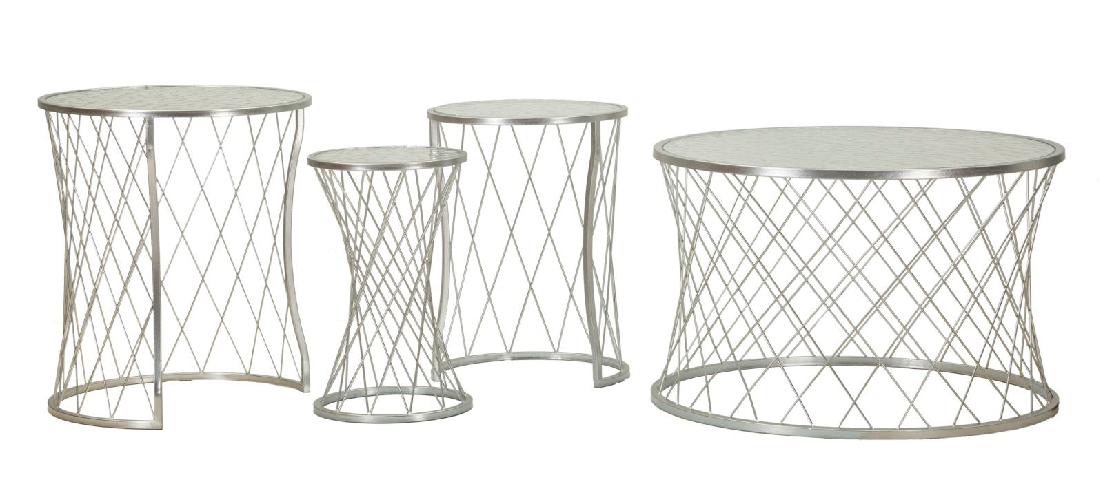 Juego de 4 mesas auxiliares de metal plateado – Noah colección moderna