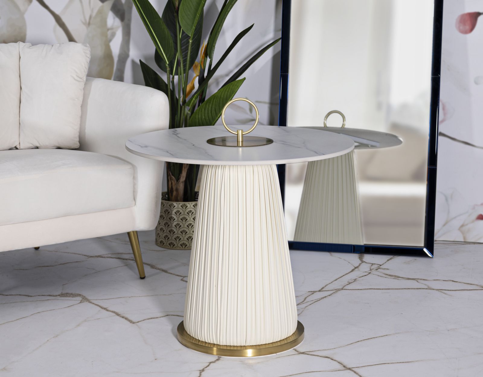Mesa de centro redonda dorada con tapa de mármol artificial – Nova estilo contemporáneo