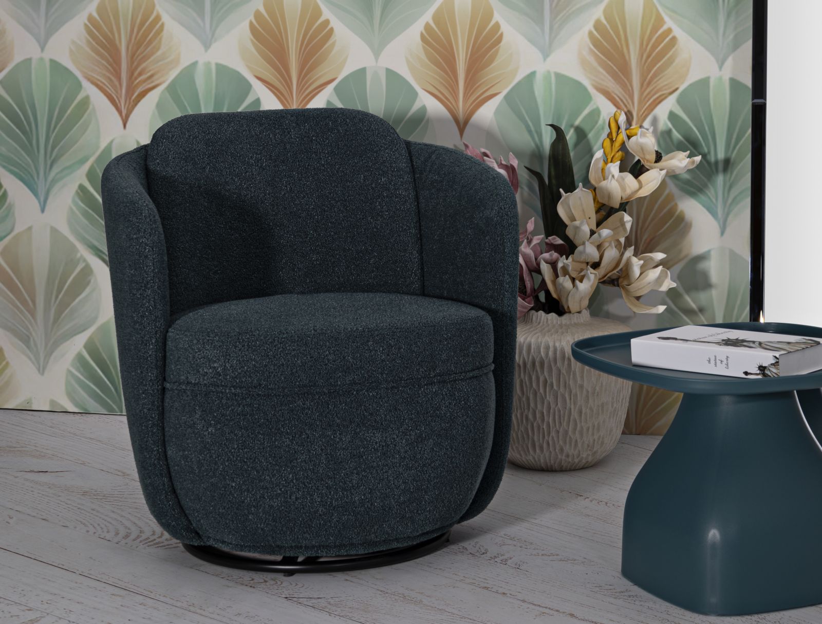 El sillón giratorio Torino Ottanio combina comodidad y diseño sofisticado. La tapicería en tejido crema aporta luminosidad y elegancia, mientras que la base giratoria garantiza practicidad y versatilidad. Perfecto para ambientes modernos y refinados.