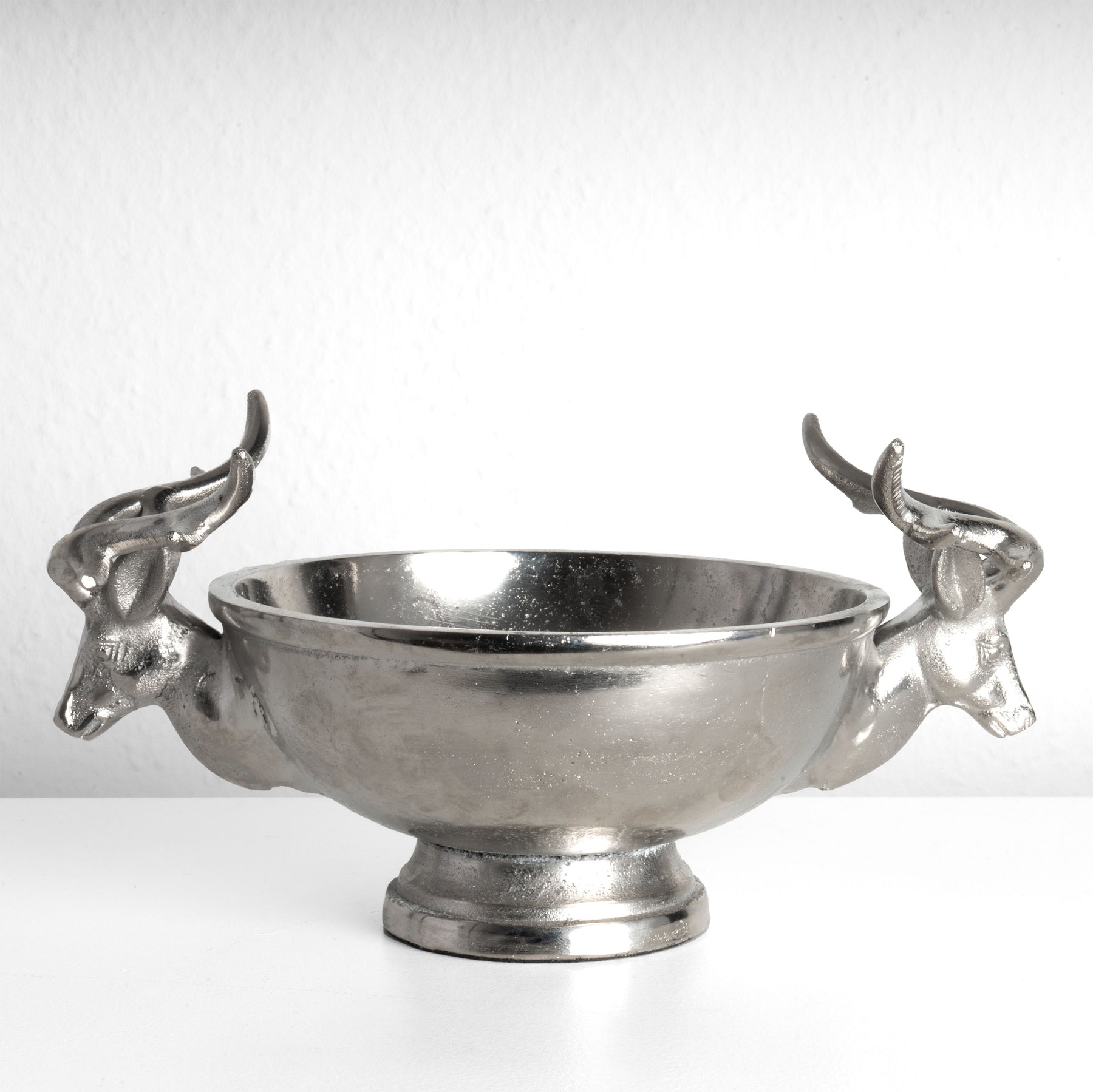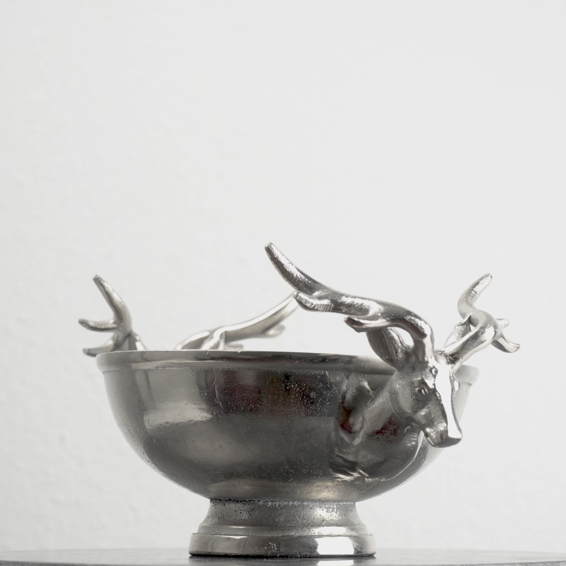 Cuenco Decorativo Plateado con Asas de Cabezas de Ciervo (Pequeño)