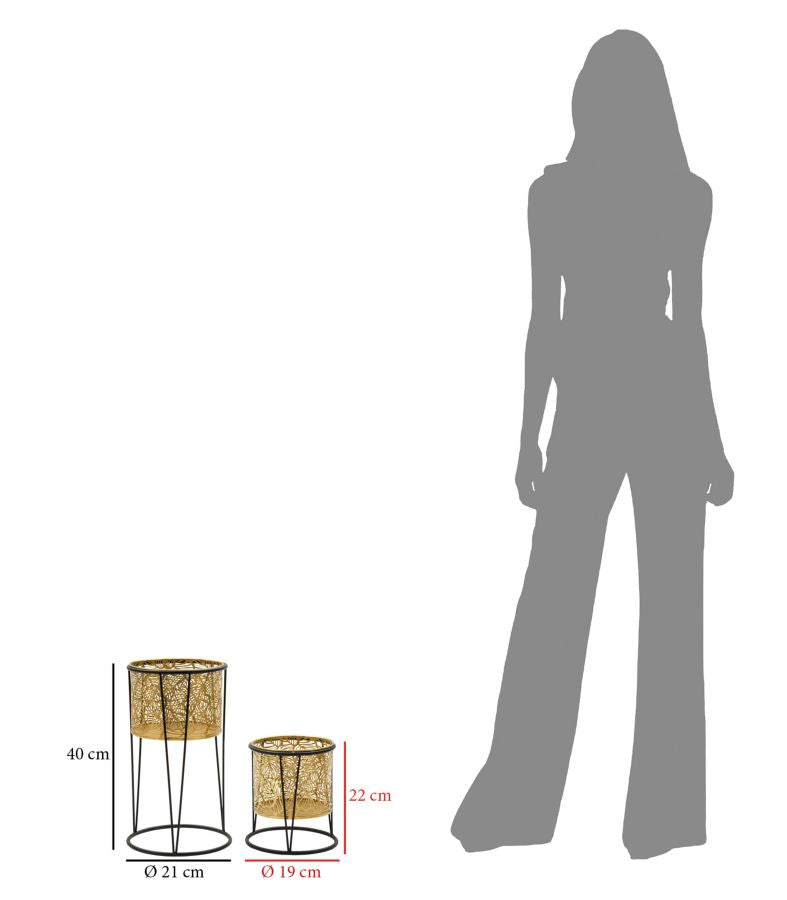Macetero Redondo de Metal Dorado con Diseño de Hojas