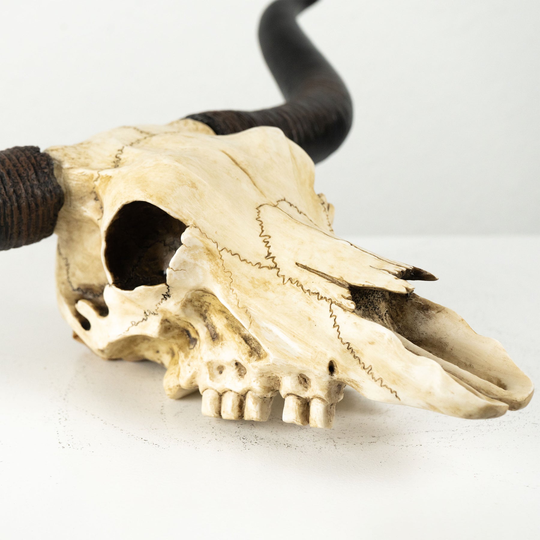• Estatua de cráneo de Longhorn, elaborada en resina de alta calidad, captura la belleza agreste y el espíritu perdurable del Oeste americano. Sus impresionantes cuernos, fijados con imanes ocultos para un ajuste seguro y fácil de colocar o retirar, junto con sus detalles realistas, convierten esta pieza en un centro de atención excepcional. Encarnando fuerza, resistencia y la esencia indómita de la frontera, es una declaración audaz en cualquier espacio rústico o con temática del suroeste o del oeste. Perfecta para la decoración del hogar, oficinas o colecciones inspiradas en la naturaleza y el patrimonio, esta escultura aporta un toque de elegancia salvaje y encanto atemporal a cualquier ambiente.