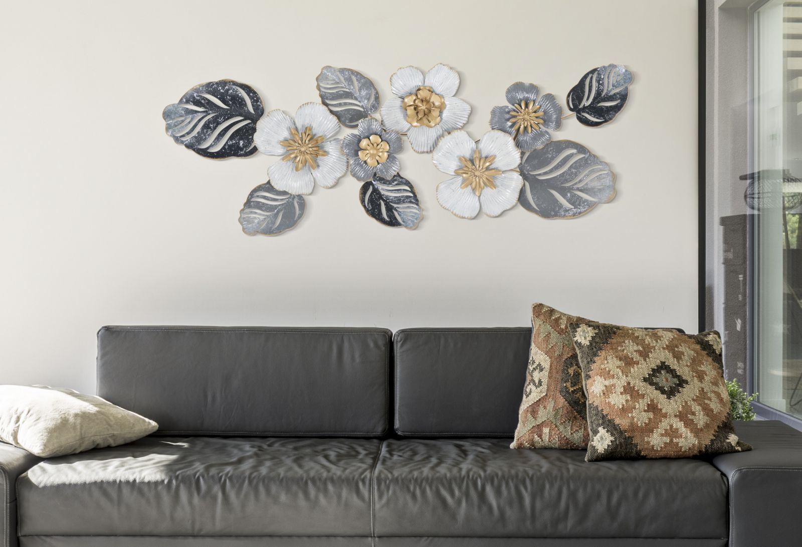 Decoración de Pared Flor de Metal Plateada y Blanca y Dorada (Escultura Moderna)