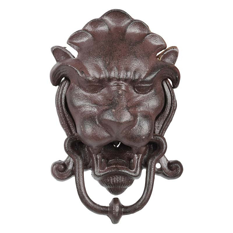 Llamador de puerta cabeza de león en hierro fundido