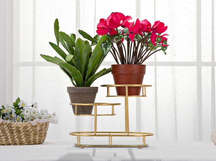 Bandeja de Metal y Cristal Dorada con 3 Estantes