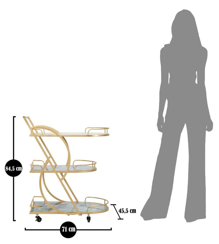 Carrito de Metal y Mármol Dorado con 3 Estantes
