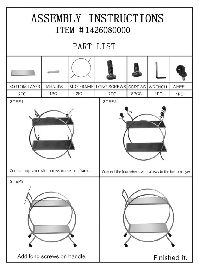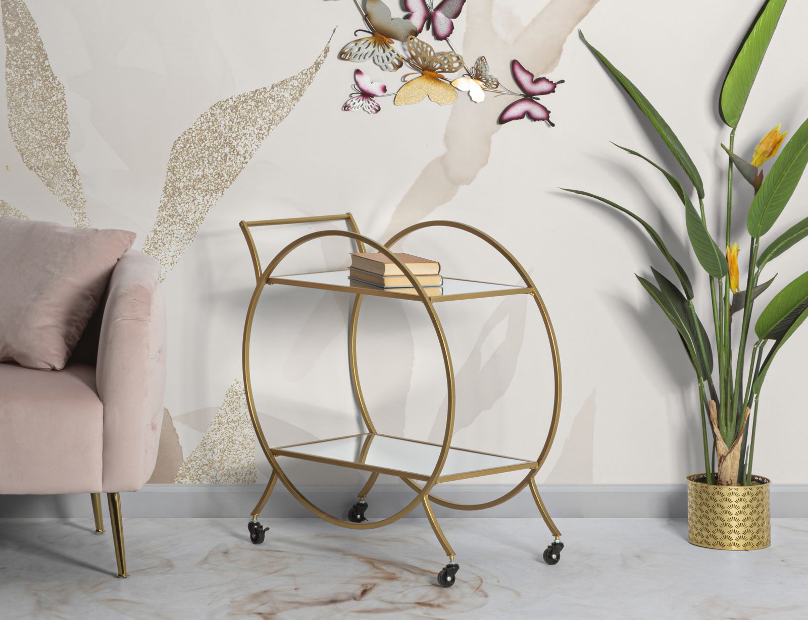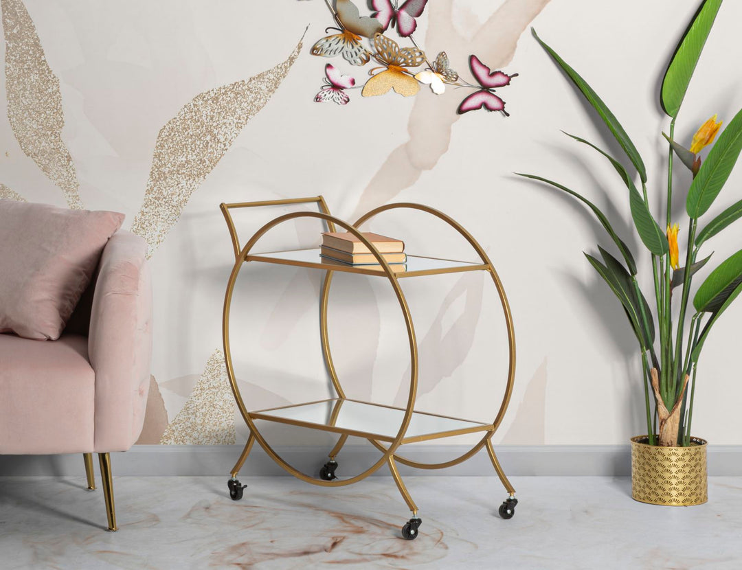 Carrito Redondo de Metal y Cristal Dorado con 2 Estantes