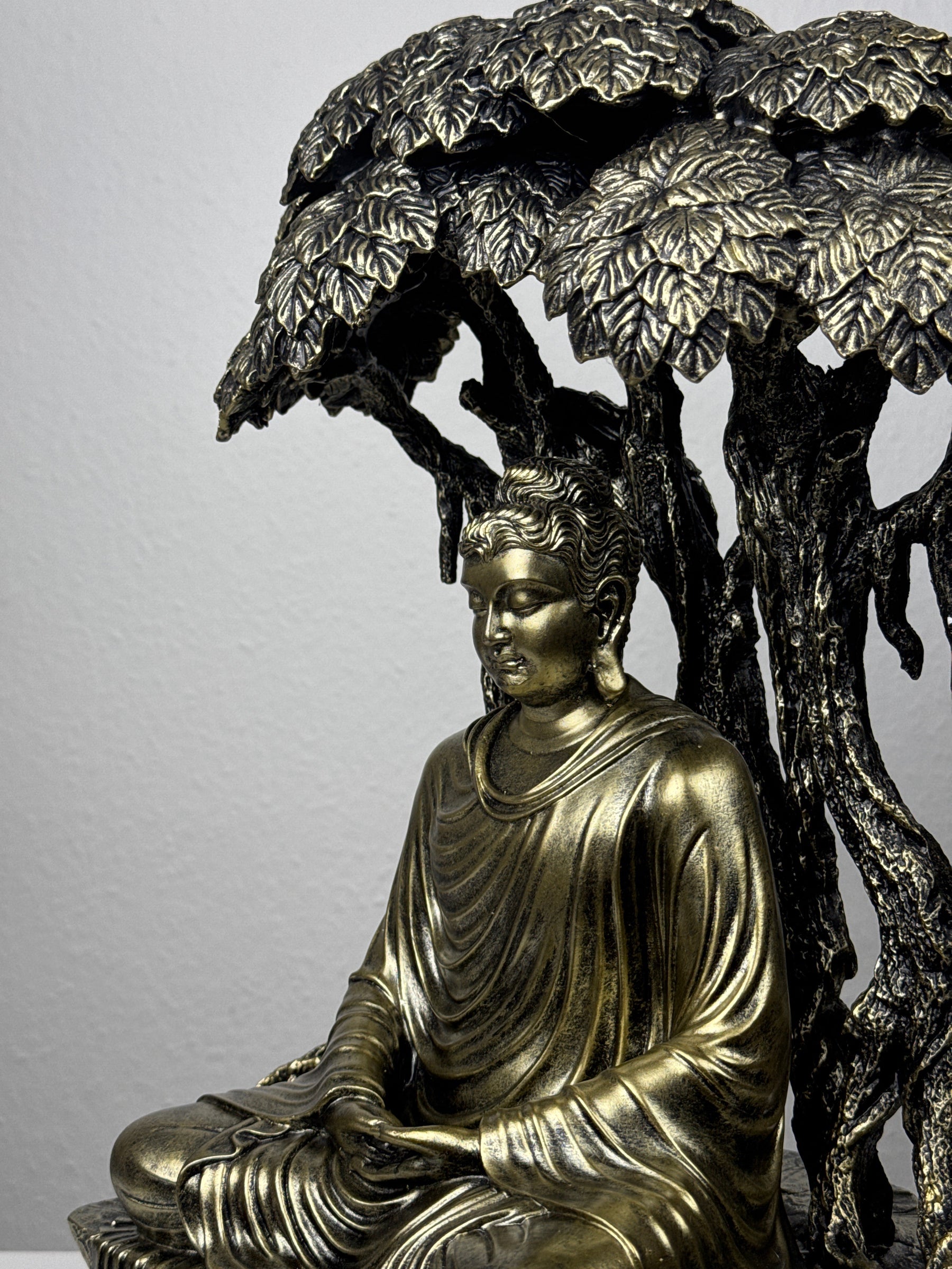 Estatua de Buda bajo el Árbol Bodhi (Acabado en Bronce)