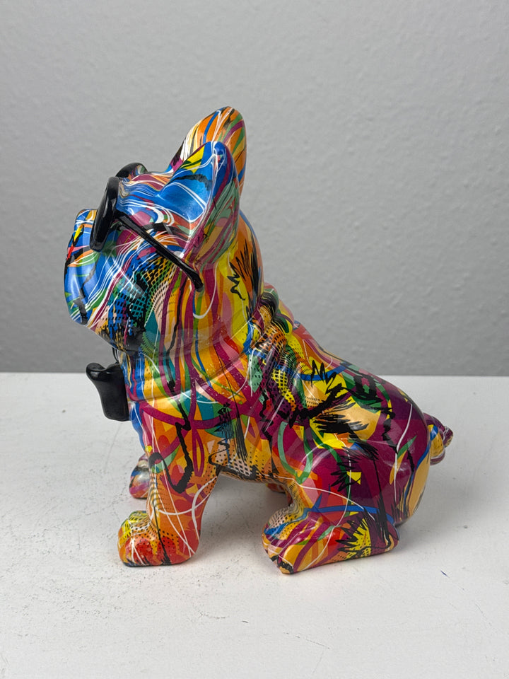 Estatua de Bulldog con Pajarita (Estilo Graffiti Pop Art)