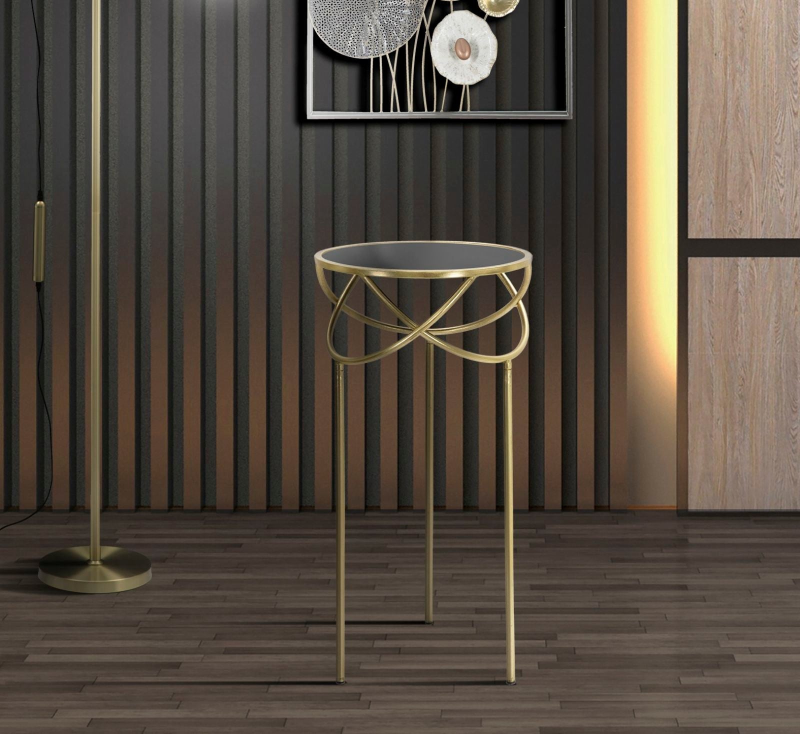Mesita Geométrica de Metal y Vidrio Dorado y Negro