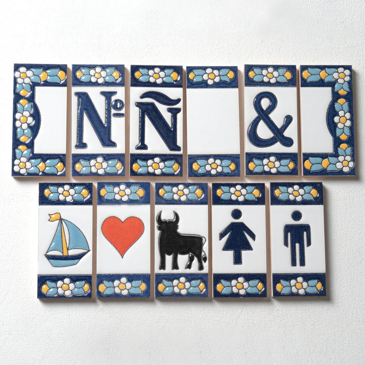 • Presentamos nuestras hermosas baldosas cerámicas de inspiración mediterránea, ¡con números, letras y símbolos decorativos!