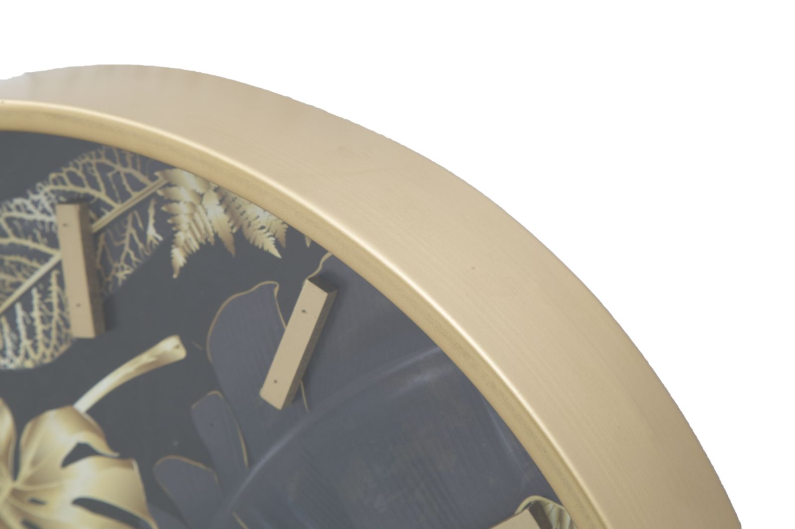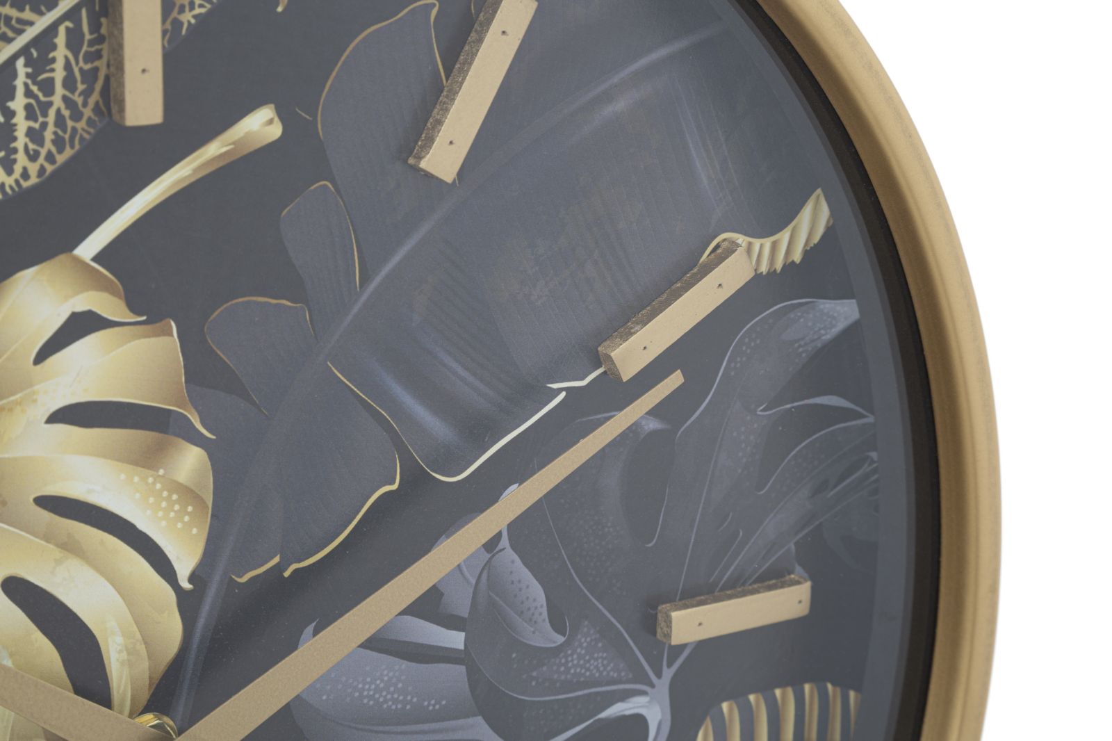 Reloj de Pared Dorado y Gris Tropical con Hojas