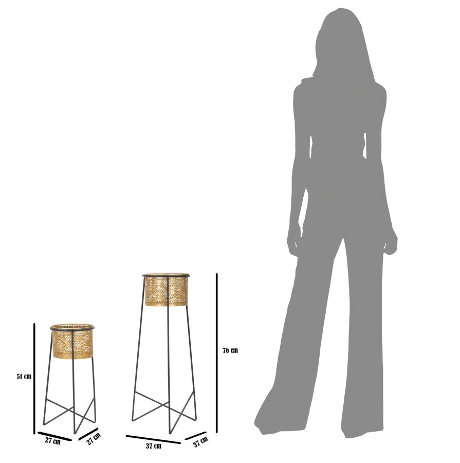 Set de 2 Maceteros de Metal Dorado con Marco Negro