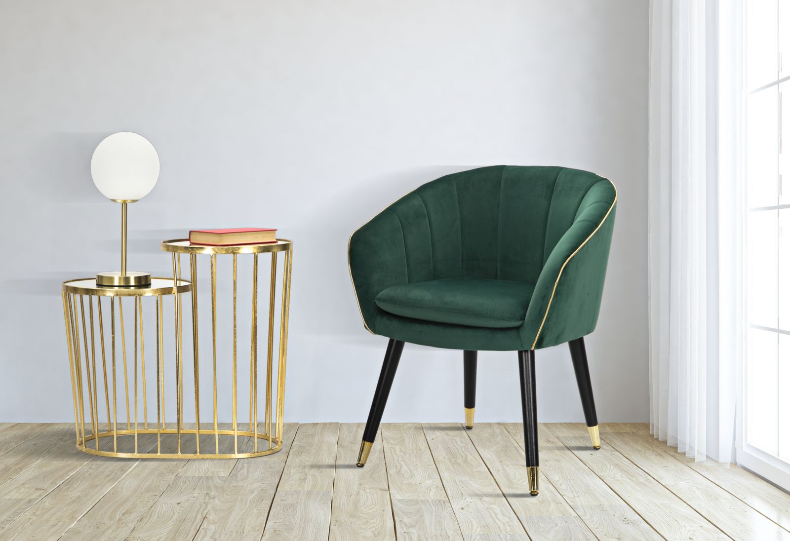 Sillón Tapizado Verde con Patas de Madera Negra y Detalles Dorados