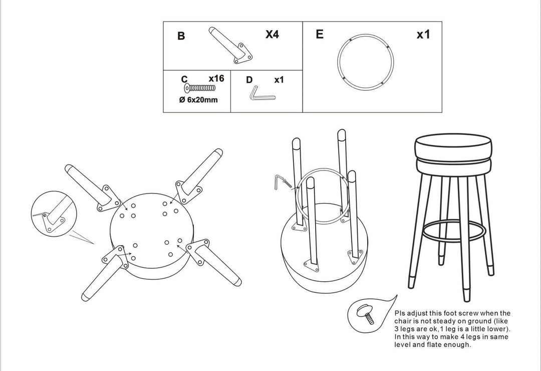 Taburete de Terciopelo Gris y Plata con Patas Negras