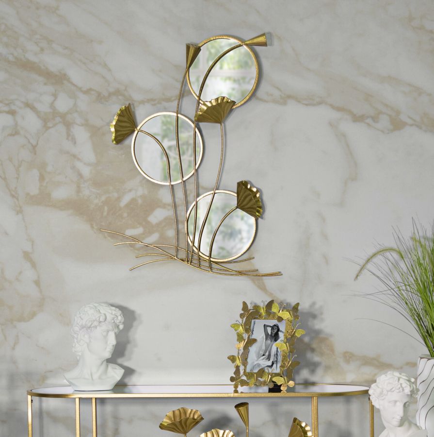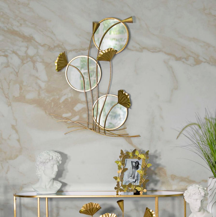 Tres pequeños espejos de pared redonda de metal patrón de hoja